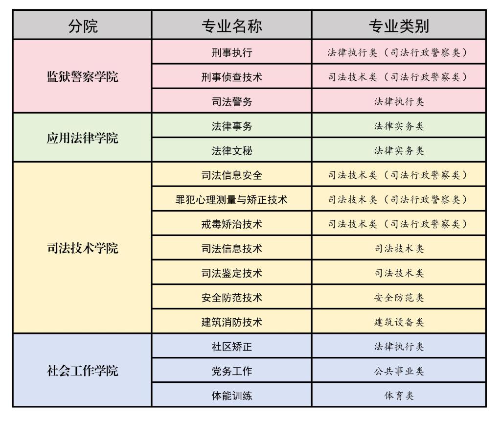 考生报考司法行政警察类专业(包括刑事执行、刑事侦查技术、戒毒矫治技术、罪犯心理测量与矫正技术、司法信息安全),均需按要求提前参加在生源省份(吉林省、青海省、内蒙古自治区和北京市)统一组织的政审、体检和体能测试等相关工作,具体安排请考生关注相关省(自治区、直辖市)司法厅、省级招生考试机构或学院当年6月对外公布的相关公告。
